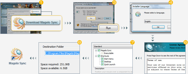 Download Magelo Sync by clicking on the “Download Magelo Sync” button in the presentation page.